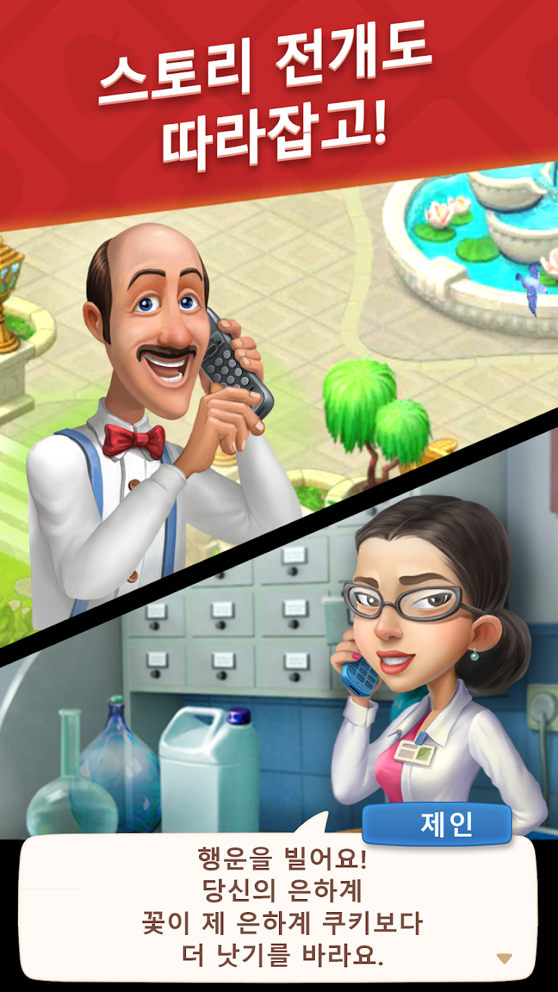 Gardenscapes는 단순한 퍼즐 게임을 넘어, 매력적인 스토리와 개성 넘치는 캐릭터들을 통해 몰입감 있는 게임 경험을 제공합니다. 오스틴을 비롯한 다양한 캐릭터들과의 상호작용은 게임에 활력을 불어넣고, 플레이어는 그들과 함께 정원을 복원해나가는 과정에서 깊은 유대감을 느낄 수 있습니다. 아름다운 그래픽과 편안한 사운드트랙은 게임의 분위기를 더욱 따뜻하고 아늑하게 만들어주며, 스트레스 해소와 휴식을 위한 완벽한 선택이 될 것입니다.